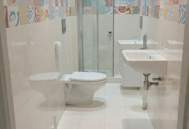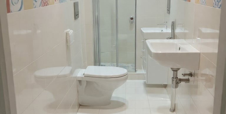 Reforma completa do banheiro, paredes antigas com azulejos pintadas com tinta epóxi, pisos renovados... tudo por um preço único.